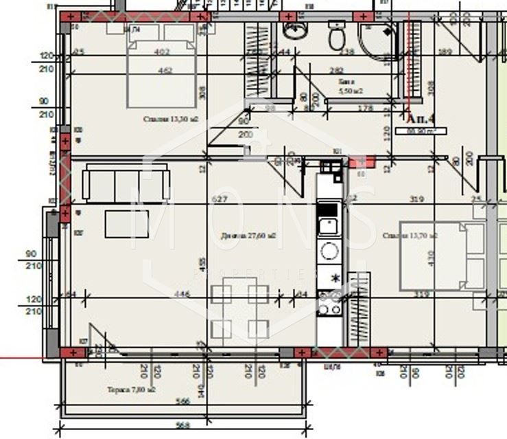 Functionally distributed two-bedroom apartments are available, located on the 4th, 5th and 6th floors of the building "Iztok".