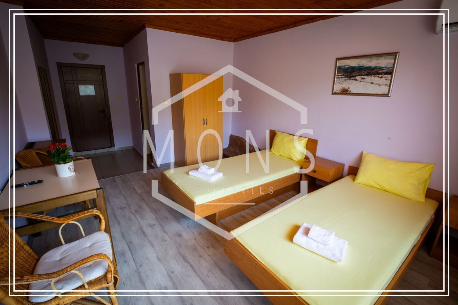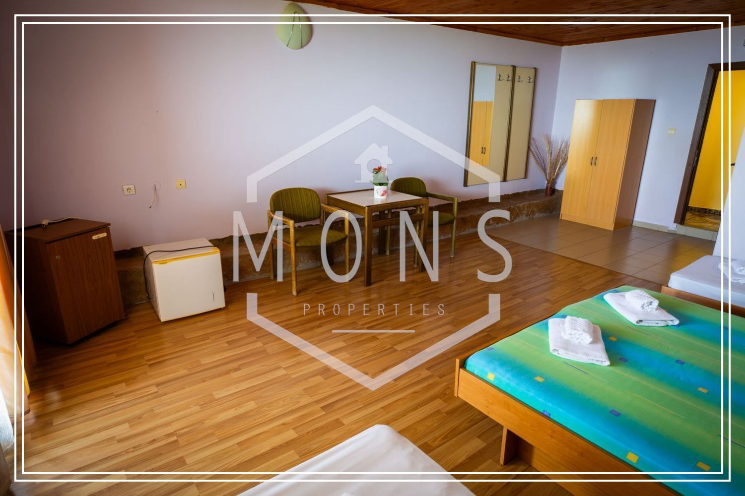On the second floor there is a conference room, an office and 11 hotel rooms with private bathrooms, 9 of which are for 2 persons;