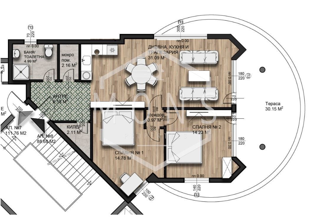 Монс Пропъртис има удоволствието да ви представи за продажба тристаен апартамент в SPA RESORT MALKI CHIFLIK на 1 км, от гр. Велико Търново.