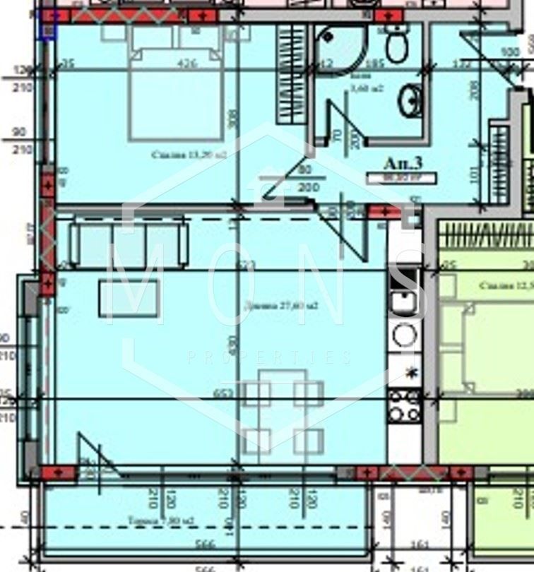 Обща площ на имота 71 кв.м., като ЗП е 63 кв.м.