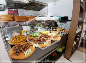 Състои се от: сновна зала за клиенти от 28 места, оборудвана кухня, санитарни помещения, складово помещение ,открита зона до 3 маси.
